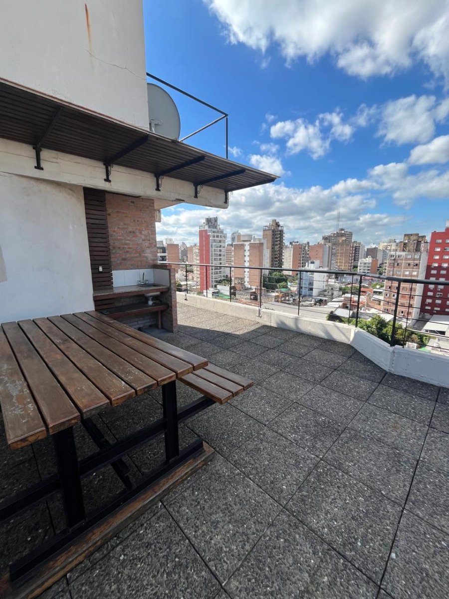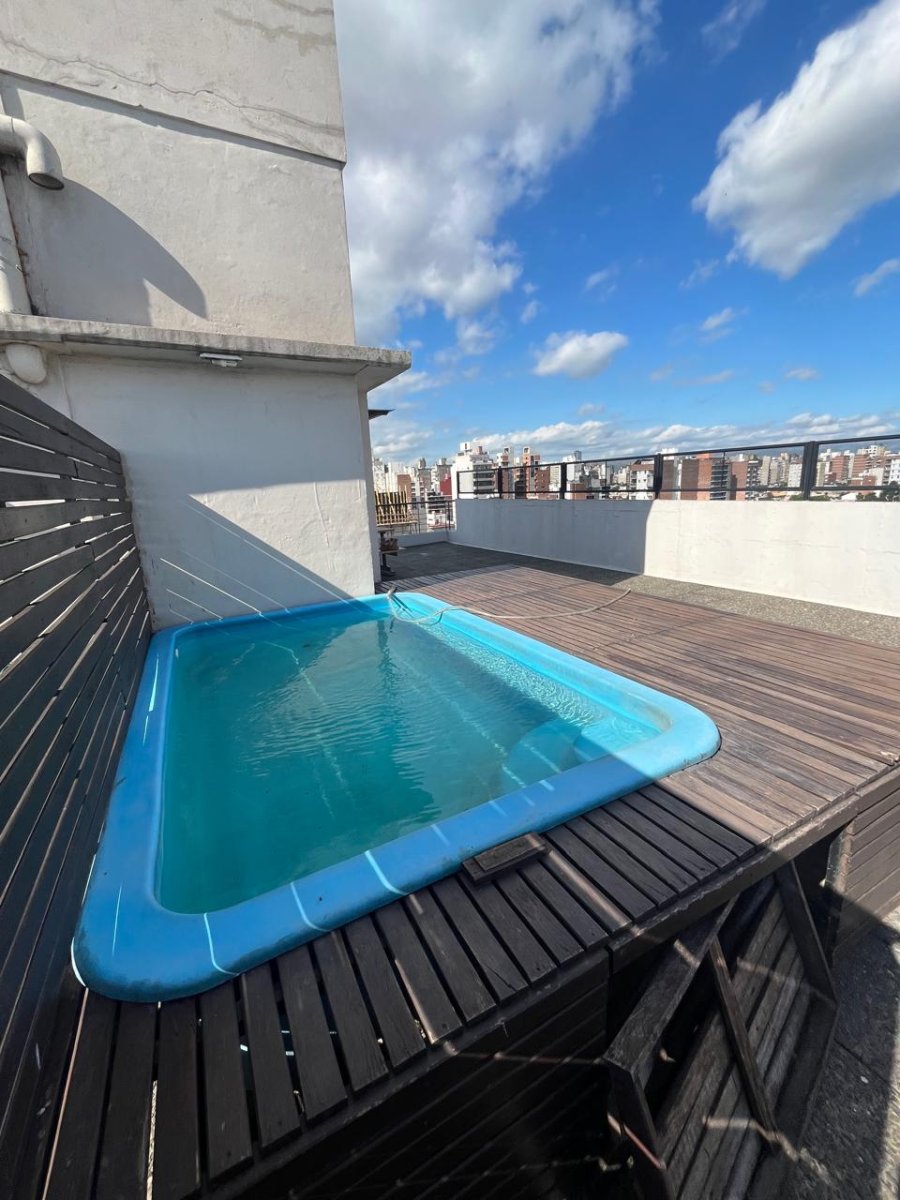 Hermoso semipiso con balcon terraza al frente y corrido al contrafrente.Cocina comedor amoblada con gran ventanal al frente,Amplio living comedor, 2 baños.Dormitorios con placares,aire y estufa Todas las abrturas con persianas electricas y mosquiteros.Cochera en PB y Terraza con parrilleros, mesa ,baño y pileta.