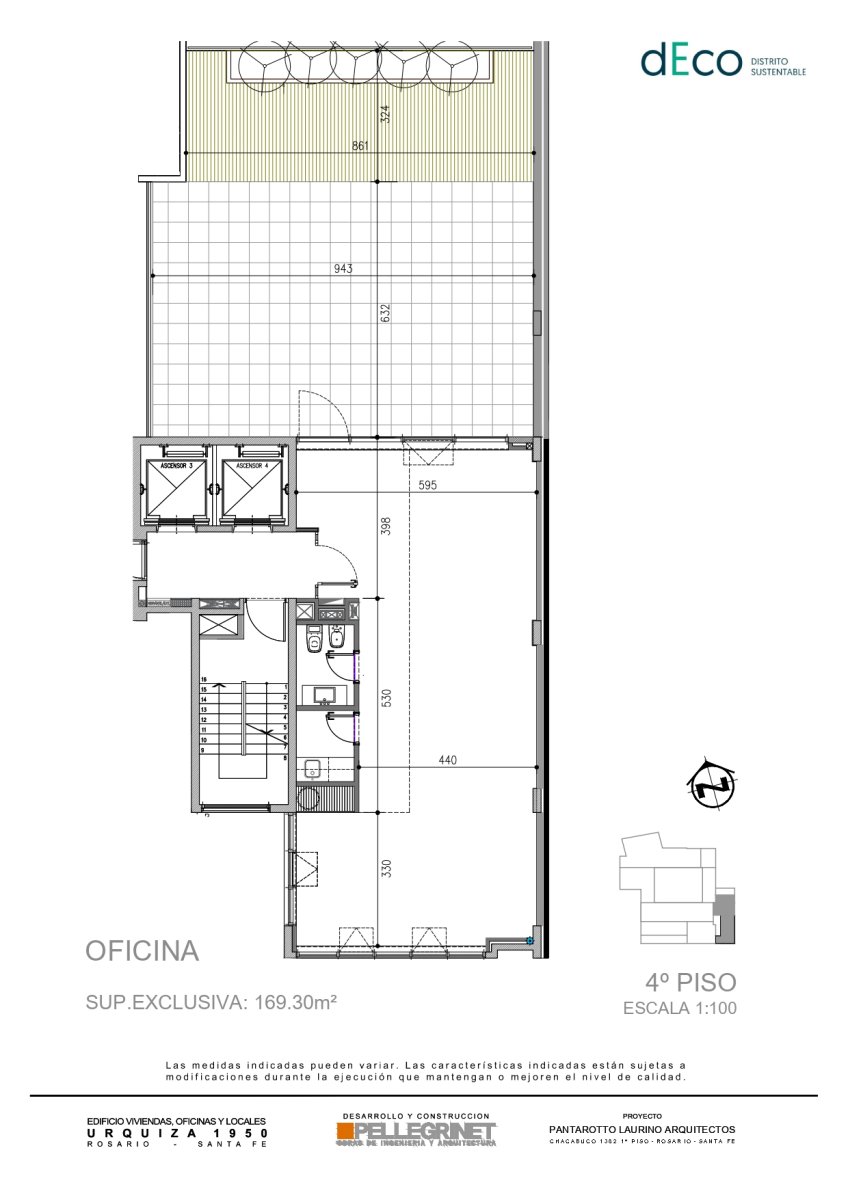 -Piso 4º: 169 m2 ( 81,40 m2 cubiertos más 88 m2 descubiertos-terraza libre uso exclusivo) . Más piso aterrazado de uso común. 2 cocheras . Alquiler mensual $2.800.000 más impuestos y servicios